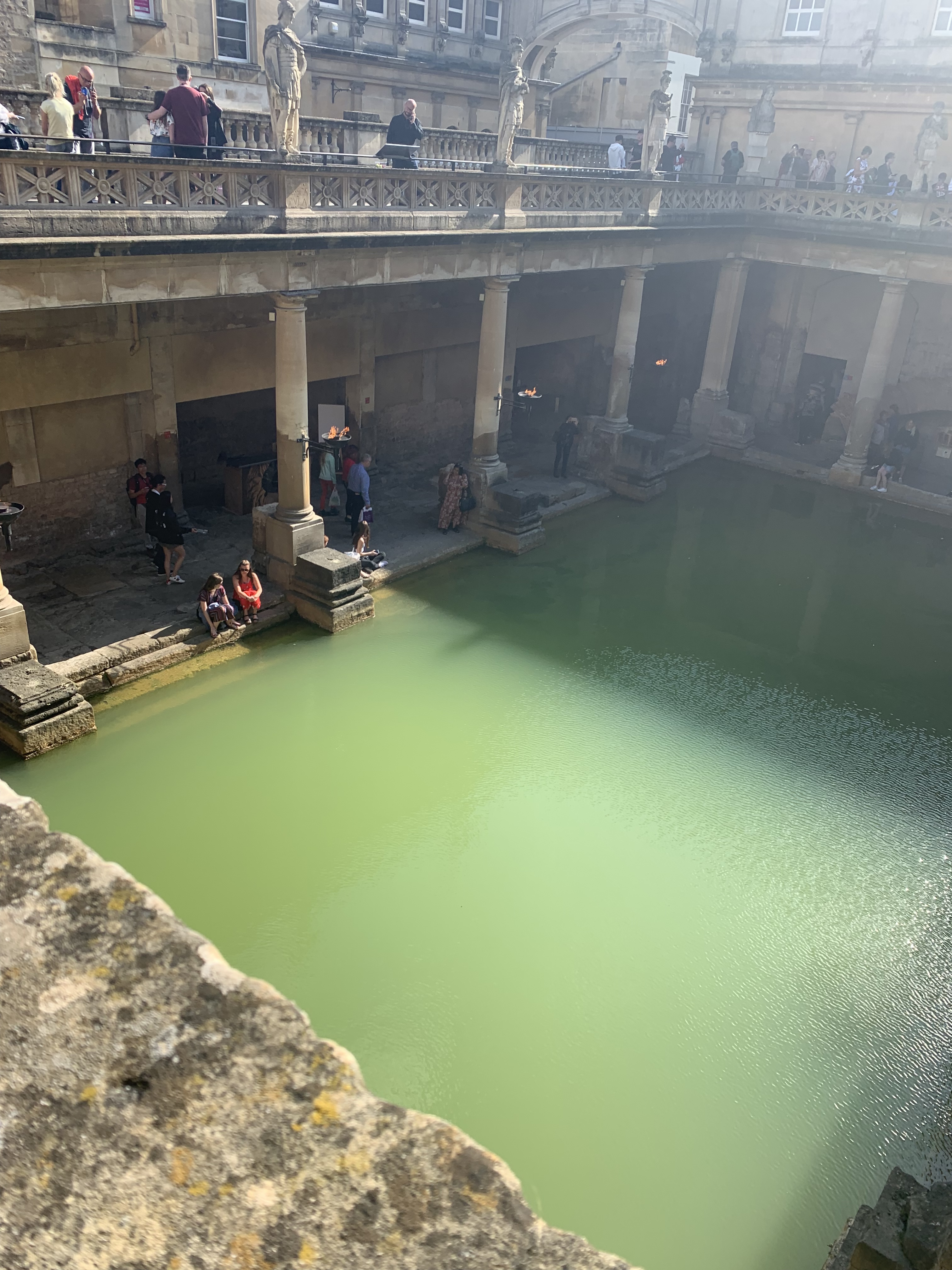 The following week was a bit more exciting I promise. After getting settled into our flats and classes, our group was able to take a couple of field trip studies and some trips of our own. In total i was able to visit the local pub nearby our town called brewdog where I had my first ever British beer.then, I was able to visit what they call the London Time Square or Piccadilly Circus. There’s so much life on the strip and so much to do and see. There’s people dancing, singing and all around having a great time in each other’s companythen, we did something legendary. We visited Stonehenge and Bath in the same day! Not many people can say that. The historic stones were said to have “magically” appeared there during the time of the Greeks and Romans and were used to tell when the calendar would date good days for praying and rest. The stones would show a perfectly good view of wherever the sun was shining that day. I’d say they were pretty magical as well. Now Bath, that was all for the Romans. The bath was said to have special healing waters and powers to bring forth good energy in life and the after life. They would bathe in this warm bath once a week to continue prosperity. (I even got to touch it since I am becoming a doctor so now I’m extra healed and my patients will be too)